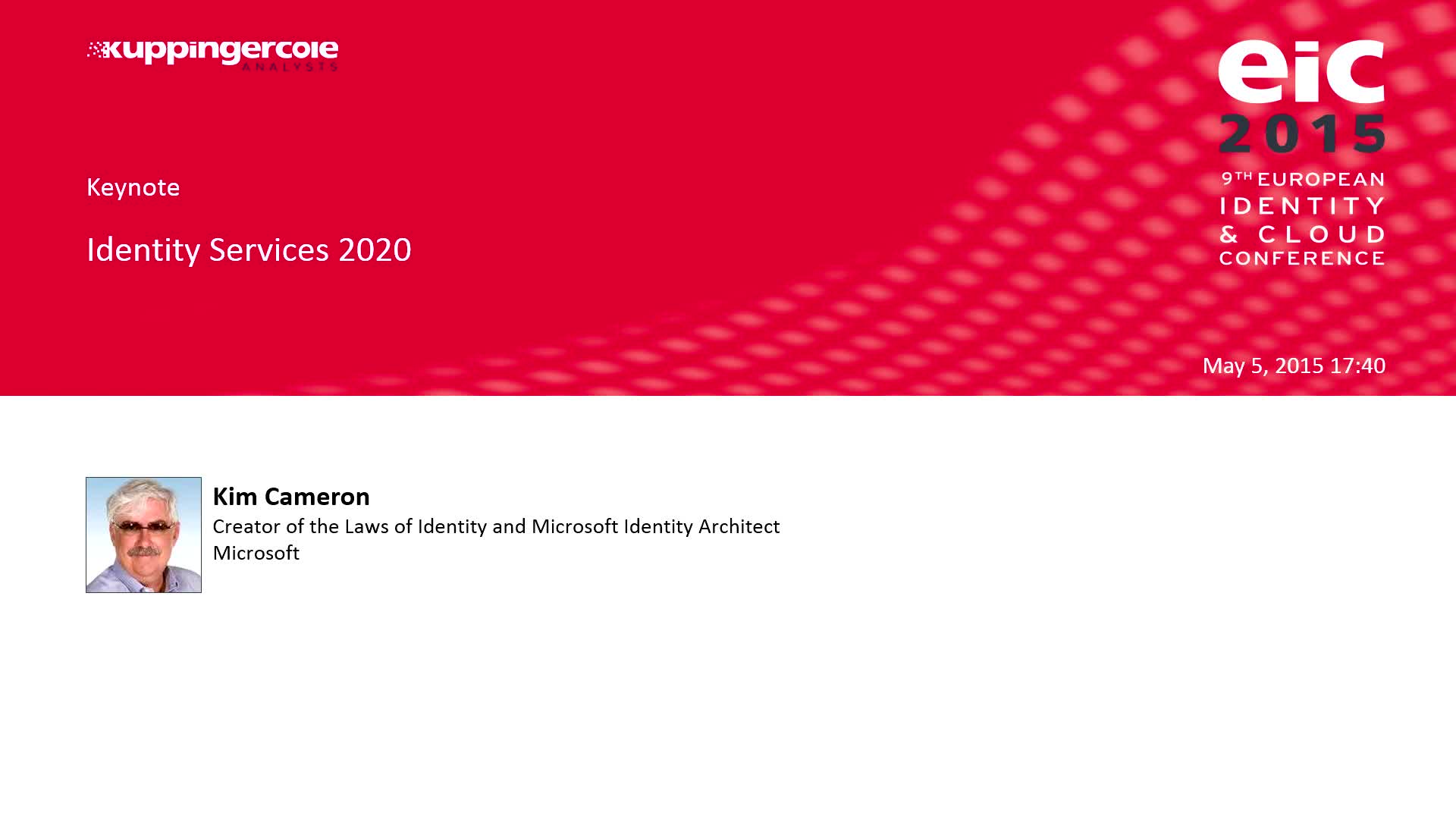 European Identity & Cloud Conference 2015, taking place May 5 – 8, 2015 at the Dolce Ballhaus Forum Unterschleissheim, Munich/Germany, is the place where identity management, cloud, and information security thought leaders and experts get together to discuss and shape the future of secure, privacy-aware agile, business- and innovation-driven IT.
